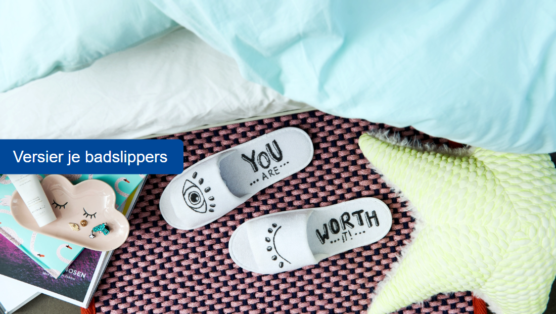 Met de edding textielmarkers kun je je eigen toilettasje of stoffen opbergzakje ontwerpen en versieren. Hiermee voeg je op een eenvoudige, maar doeltreffende manier een persoonlijk tintje toe aan je badkamer of toilettafel. En ze zijn natuurlijk ook geweldig om cadeau te geven aan een geliefde!