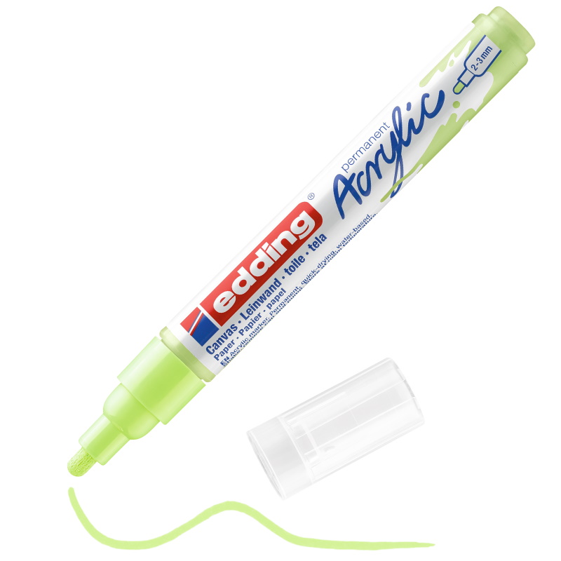 edding Acrylmarker 5100 medium is een allrounder in de acryl serie! Zoekt u een acrylmarker die het overal goed doet? Dan is de edding acrylmarker 5100 medium de juiste keuze! Met zijn middelfijne ronde punt en een schrijfbreedte van 2-3 mm kunt u precieze lijnen en vormen tekenen op linnen of verfpapier.