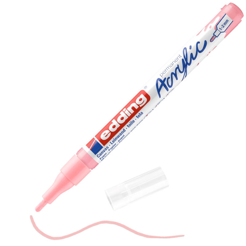 De kleinste in de serie acrylmarkers is de edding acrylmarker 5300 fijn. Met zijn fijne ronde punt en een schrijfbreedte van 1-2 mm is dit het perfecte product om op kleinere oppervlakken te werken of om details toe te voegen die uw kunstwerk tot een uniek werk maken!
