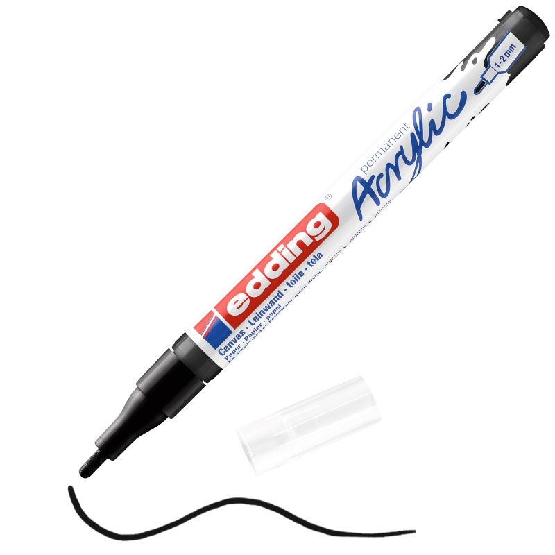 De kleinste in de serie acrylmarkers is de edding acrylmarker 5300 fijn. Met zijn fijne ronde punt en een schrijfbreedte van 1-2 mm is dit het perfecte product om op kleinere oppervlakken te werken of om details toe te voegen die uw kunstwerk tot een uniek werk maken!