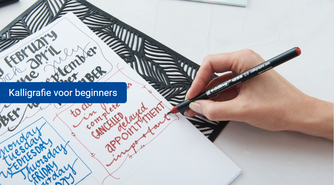 Schrijven is méér dan alleen een manier om gedachten en ideeën over te brengen; uw eigen handschrift kan ook een geweldig ontwerpmiddel zijn. Maar hoe krijgt u het voor elkaar om expressieve, creatieve resultaten op papier te zetten? Als dit iets is wat u wilt doen, bent u bij ons aan het juiste adres! Wij willen u graag laten zien hoe u uw eigen handschrift meer uitdrukkingskracht kunt geven door u de (theoretische en praktische) grondbeginselen van kalligrafie te laten zien met behulp van de kalligrafiemarkers van edding. Wij wensen u veel schrijfplezier!