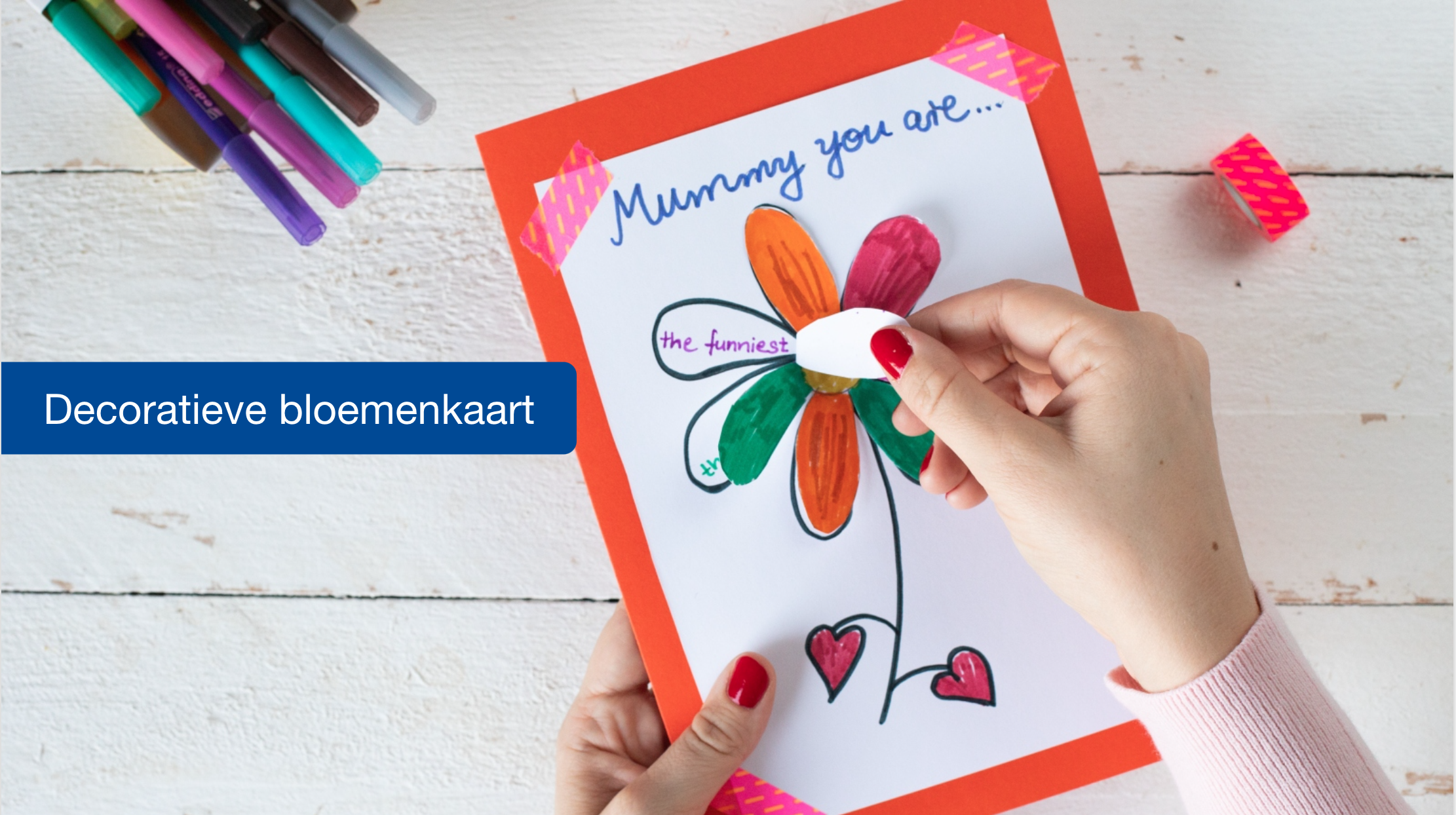 Deze prachtige wenskaart is het perfecte Moederdag cadeau, omdat de boodschap niet direct zichtbaar is. Het levendig gekleurde bloemendesign verbergt zorgvuldig geheime boodschappen die pas onthuld worden wanneer de blaadjes worden geopend. De edding Funtastics kinderstiften zijn perfect voor het inkleuren van het design. Ze zijn beschikbaar in 18 heldere en subtiele kleuren. Dankzij de fijne 1 mm punt kun je eenvoudig gedetailleerde designs zoals de bloemhartjes tekenen.