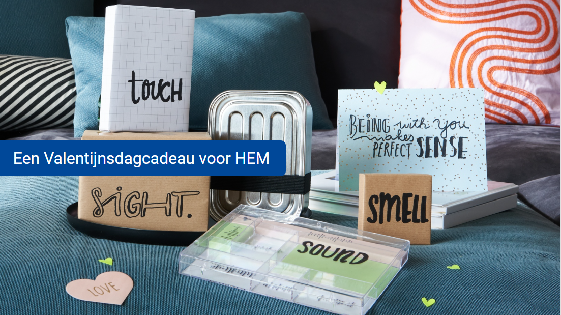 Soms kan het best uitdagend zijn om een passend cadeau te vinden voor je geliefde op Valentijnsdag. Dit idee spreekt letterlijk alle zintuigen aan en is ook nog eens eenvoudig te maken. Elk pakje bevat een liefdevol geschenk om een van de zintuigen te prikkelen. Denk bij 'smaak' aan iets zoets, 'reuk' aan aftershave, en 'gehoor' aan misschien een favoriet liedje. Gebruik de klassieke permanent markers van edding, die op vrijwel elk materiaal werken, om de doosjes op deze manier te labelen. De kaart kun je versieren met handlettering, waarbij je kunt kiezen uit maar liefst 20 kleuren. Als je de voorkeur geeft aan een meer subtiele uitstraling, kun je ook voor zwart gaan.